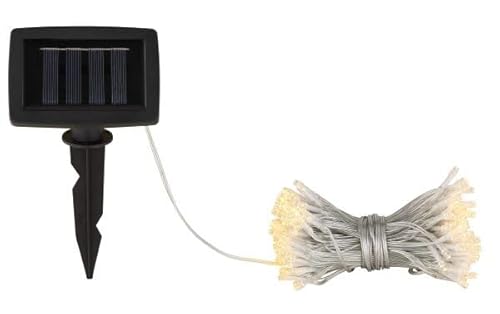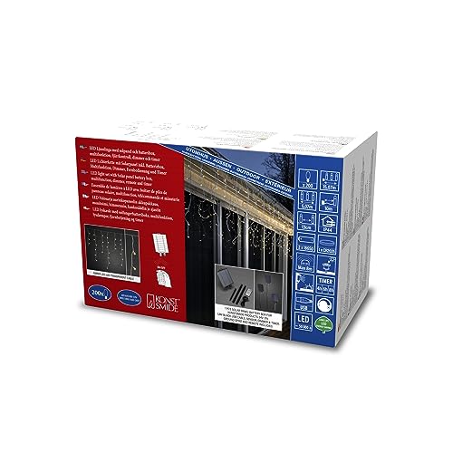 Konstsmide 2777-802SP Rideau lumineux solaire avec 200 diodes ambrées et câble blanc 2 piles au lithium et 1 CR2025 (inclus)