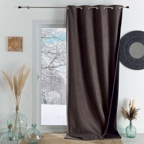 Homemaison QABANE - Rideau Thermique Phonique KONFOR - Flanelle Polyester - Occultant Isolant Froid et Bruit - Chambre Salon Bureau - 8 Oeillets - 140 x 180 cm - Taupe