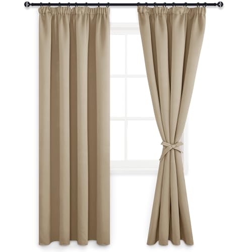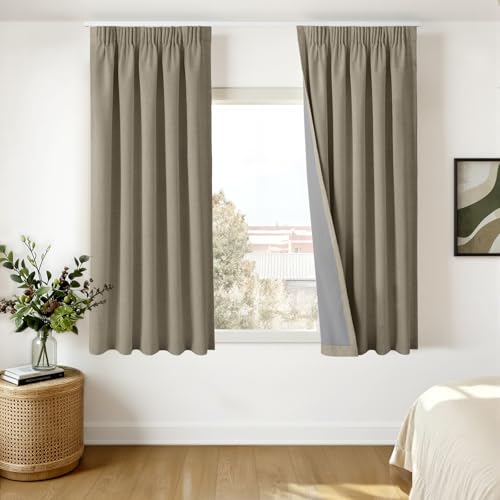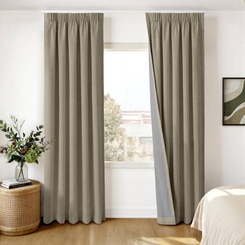 DWCN Lot de 2 Rideau Occultant Galon Fronceur Rideau avec Cravates Rideau Thermique Isolant Anti Froid et Chaleur Rideau Cuisine, Rideaux pour Salon et Chambre, 167 x 137 cm(Largeur x Hauteur), Taupe
