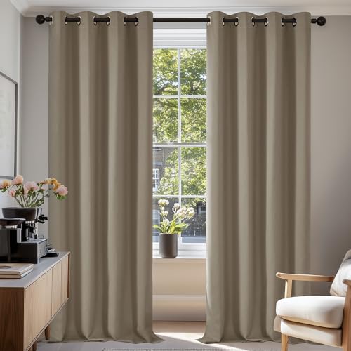 Deconovo Rideau Occultant Thermiques Anti Froid, Double Rideau Isolant Anti-Bruit, Économie d'Énergie, Idéal pour Chambre et Salon, 107X214 CM (Largeur X Hauteur), Taupe, 2 Pièces