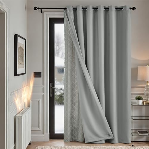 MRTREES Rideau Occultants - Rideau Thermique Anti Chaleur Économie d'énergie pour Salon Chambre Grande Porte-Fenêtre, 140X260cm (L X H), Gris Clair, 2 Pcs