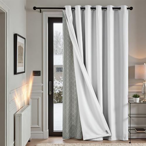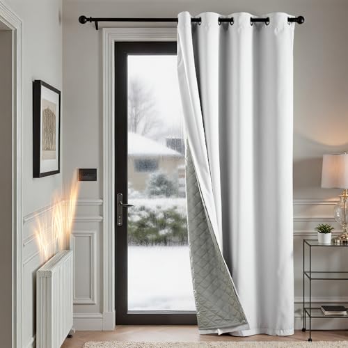 TOPICK Rideau Occultant Isolant Thermique Anti Chaleur Froid, Double Couche Amovible, 200x260cm (LxH) Lot de 1 à Oeillets, Tenture Opaque pour Porte Chambre Salon,Blanc