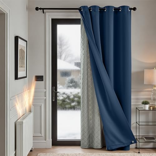 TOPICK Rideau Occultant Isolant Thermique Anti Chaleur Froid, Double Couche Amovible, 140x260cm (LxH) Lot de 1 à Oeillets, Tenture Opaque pour Porte Chambre Salon,Bleu