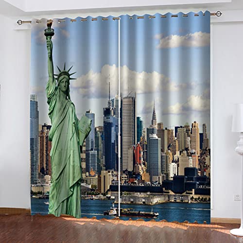 AOKLEY Rideau Occultant Ville & Statue Rideau Thermique Isolant Anti Chaleur à Oeillets Anti Bruit Tissu Lourd Lumineux Bloquer avec Noir Taille:170cm(L) x200cm(H)