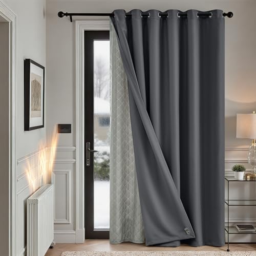 TOPICK Rideau Occultant Isolant Thermique Anti Chaleur Froid, Double Couche Amovible, 200x260cm (LxH) Lot de 1 à Oeillets, Tenture Opaque pour Porte Chambre Salon,Gris Foncé