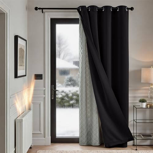 TOPICK Rideau Occultant Isolant Thermique Anti Chaleur Froid, Double Couche Amovible, 132x214cm (LxH) Lot de 1 à Oeillets, Tenture Opaque pour Porte Chambre Salon,Noir
