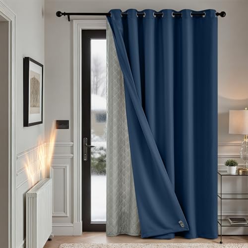 TOPICK Rideau Occultant Isolant Thermique Anti Chaleur Froid, Double Couche Amovible, 200x260cm (LxH) Lot de 1 à Oeillets, Tenture Opaque pour Porte Chambre Salon,Bleu