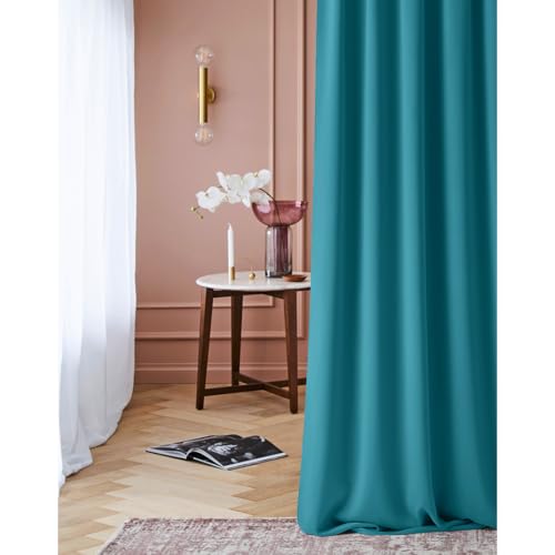 ROOM99 Rideau avec Passe Tringle Laurel 140 x 280 cm Largeur x Hauteur, Décoration de Fenêtre, Rideau occultant Thermique Isolant Anti Froid et Chaleur pour Salon Turquoise