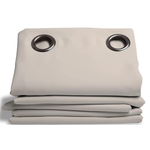 CUCRAF Rideau occultant Thermiques 2 Pièces L117xH137, Rideau Salon Thermique Isolant Anti Froid et Chaleur Tenture Opaque à Oeillets Isolation Lumiere Anti UV Beige