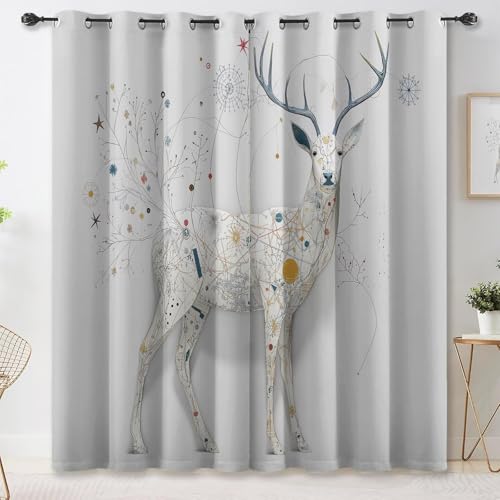 Lot de 2 Rideaux de Porte Occultants, Galon Fronceur 100L X 220H cm Design Fantaisie Animaux Collage - Rideau Isolant Thermique et Phonique pour Chambre, Salon ou Couloir Blanc