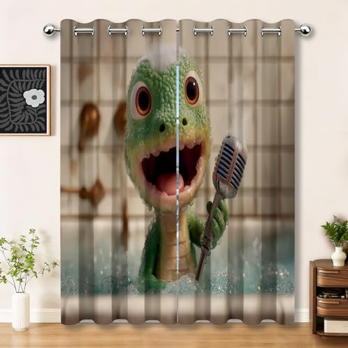 Aolity Occultant 3D Dinosaures Animaux Kawaii - Rideau Isolant Thermique Et Phonique en Polyester pour Chambre d'Enfant, Cuisine, Petite Fenetre - Lot De 2 - 75x166 cm LxH