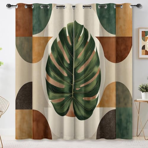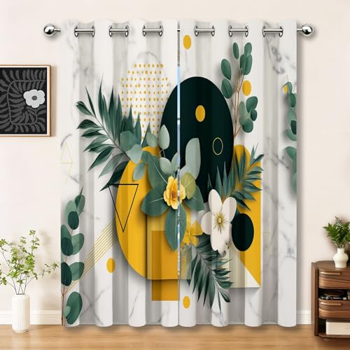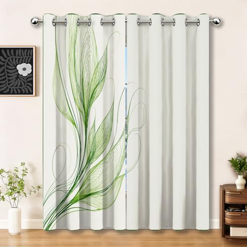 Stfery Rideaux Opaque Salon Vert à Œillets 2 Pièces, Rideau Isolant Thermique et Phonique Imprimé Fleurs Feuilles Chambre Fenetre, 132x274cm x 1pc