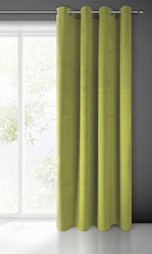 Eurofirany Rideau en Velours avec Oeillets - 1 Panneau, Traitement de Fenêtre Occultant, Rideaux pour Chambre, Cuisine, Salon, Super Doux, 140x250 cm, Vert