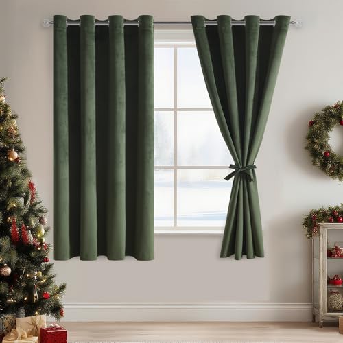PONY DANCE Rideau en Velours - Rideaux Vert Thermiques Epais 300g/㎡ Prêt à Poser Galon Fronceur Decoration Noël Salon Chambre, L 132 x H 280 cm, Vert Foncé, Lot de 2