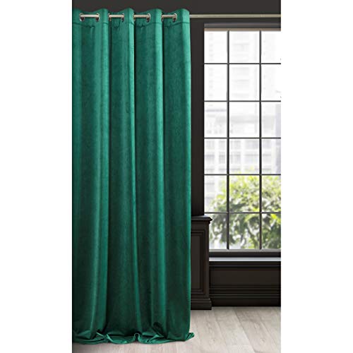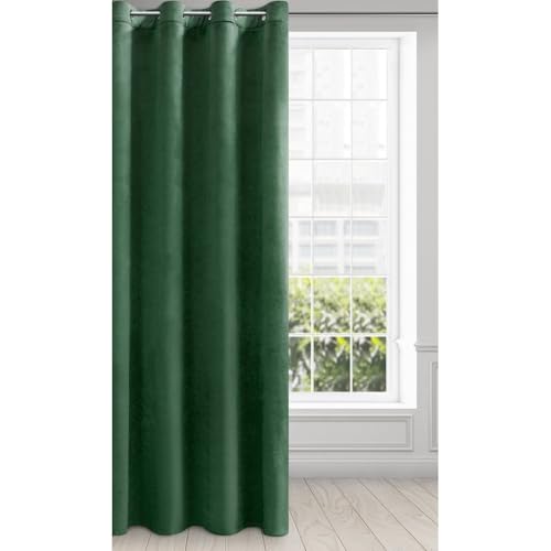 Eurofirany Rideau en Velours avec Oeillets - 1 Panneau, Traitement de Fenêtre Occultant, Rideaux pour Chambre, Cuisine, Salon, Super Doux, 140x250 cm, Vert Foncé