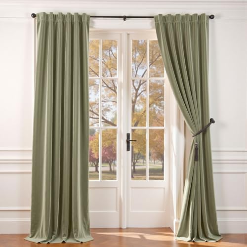 Lazzzy Rideau occultant en Velours Vert à Isolation Thermique pour Chambre à Coucher et Salon, Rideaux insonorisants en Velours avec Passe-Tringle, 1 Panneau de 228,6 cm de Long, Vert Sauge