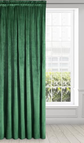 Eurofirany Rideau en Velours avec Ruban Fronceur - 1 Panneau, Traitement de Fenêtre Occultant, Rideaux pour Chambre, Cuisine, Salon, Super Doux, 140x270 cm, Vert