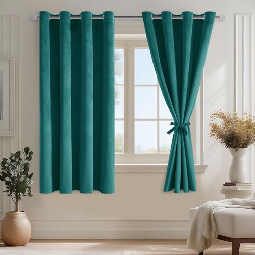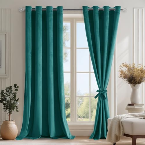 DWCN Rideau Velours 140L X 280H cm Lot de 2, Semi-Occultant Thermiques Rideau à Oeillets avec 2 Embrasses, Moderne Doux Luxurious Rideaux Velours pour Chambre, Salon, Bureau, Hôtel, Vert Canard