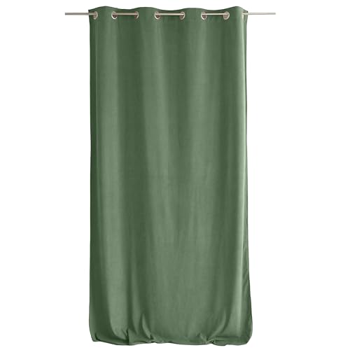 Douceur d'Intérieur, Rideau à Oeillets (135 x 280 cm) Melodie Vert, Occultant Velours Frappé
