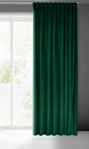 Eurofirany Villa Rideau en Velours Doux avec Galon Fronceur-1 pièce élégant de qualité supérieure pour Chambre à Coucher, Salon, Velvet, Polyester, Vert Foncé, 140x270 cm