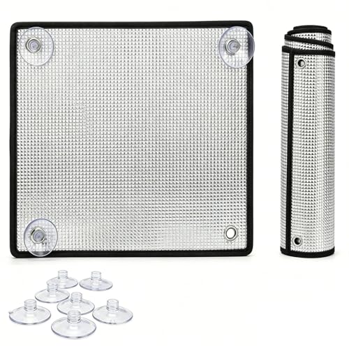 Film Fenêtre Anti Regard Isolation Thermique, Double Feuille Aluminium Réflecteur Solaire avec Ventouse, Rideau Occultant Thermique pour Fenêtre de Toit et Velux(Gris,80cm x 80cm)