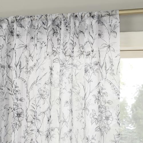 No. 918 Ambree Panneau de Rideau Transparent Vintage avec Passe-Tringle, 129,5 x 213,4 cm, Noir/Blanc