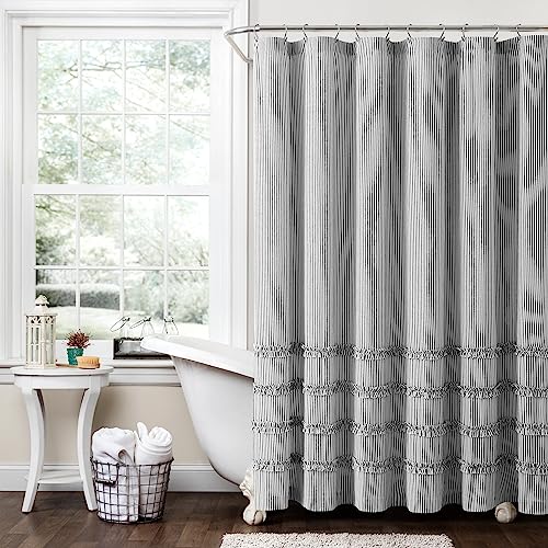 Lush Decor Rideau de Douche Vintage en Coton Teint à Rayures, 183 x 183 cm, Noir