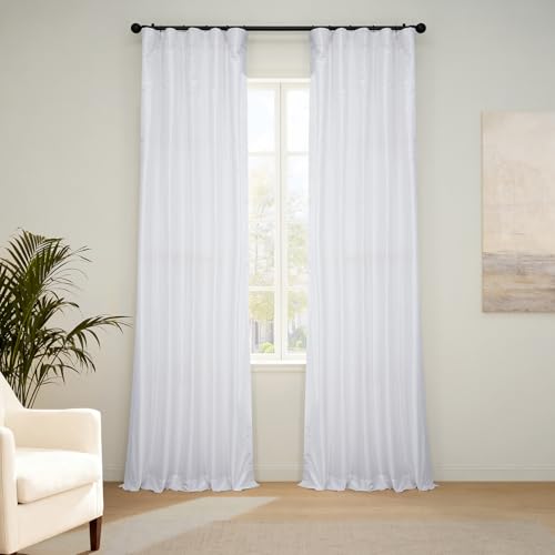 HPD Half Price Drapes Rideaux occultants en Soie synthétique de 274,3 cm de Long pour Chambre à Coucher et Salon – Rideau occultant texturé Vintage (1 Panneau), 127 x 274 cm (l x L), Blanc cassé