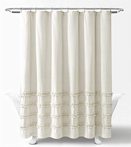 Lush Decor Rideau de Douche Vintage rayé en Coton Teint Neutre 72 x 72 cm