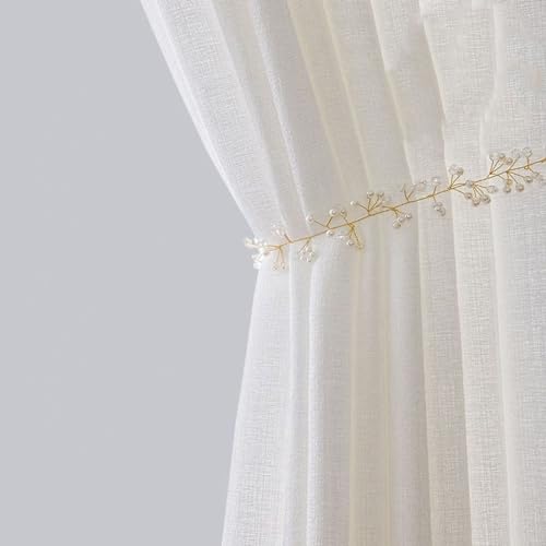CUTEWIND Rideau Voilage en Lin Translucide pour Salon Moderne 140x215 CM Lot de 2 Panneaux de Rideaux Voilages Intérieurs à Oeillets Rideau Voile Blanc pour Porte Fenetre Chambre Adulte