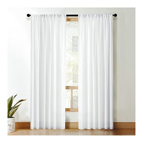 Homxi Rideau Salon Moderne Lot de 2 Rideaux Voilage Cuisine 2 x 102Wx183L CM,Rideau Voile Moderne Blanc Couleur Unie Rideau Chambre Passe Tringle