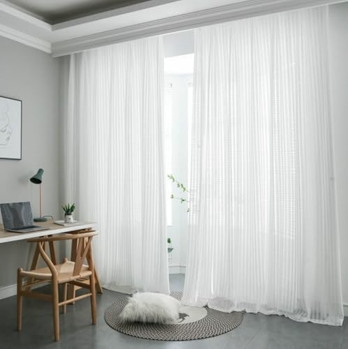 BWDHJLEY Rideau Fenetre Blanc, Voile Rideau Chambre Lot de 2 Polyester Feuilles Brodées LxH 96x115cm