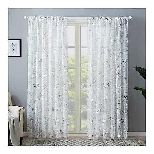 Homxi 2 Rideaux Panneau Rideau Voilage,2 x 137W x 244H CM,Rideau Voile Transparent Blanc Broderie de Dentelle de Fleurs Rideaux à Oeillet