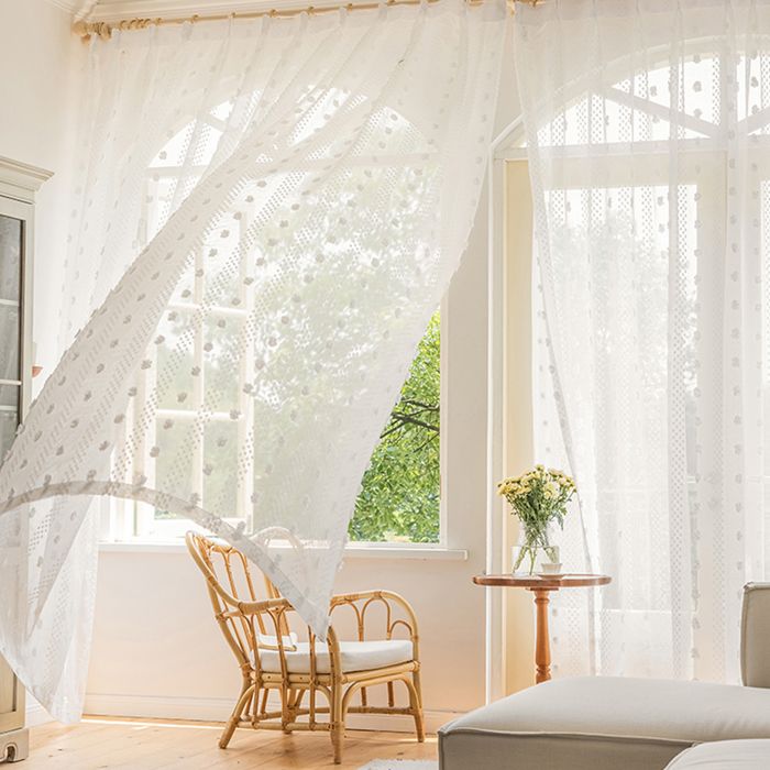 Mesnt Rideau Voile Blanc, Rideau Transparent en Filet à Motif de Boules brodées Décoration Élégante de Dressing Salon Chambre Salle à Manger, Blanc, 115 x 96 cm (HxL)