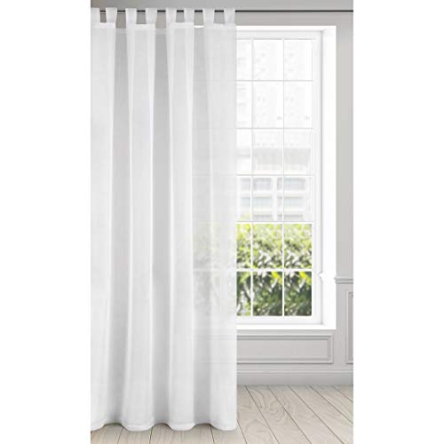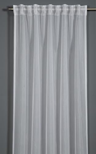 GARDINESTAN Rideau en voile transparent blanc – ignifuge et translucide – Avec ruban universel et galon fronceur – Lesté par bande de plomb – Facile d'entretien et lavable – Moderne et élégant (270 x