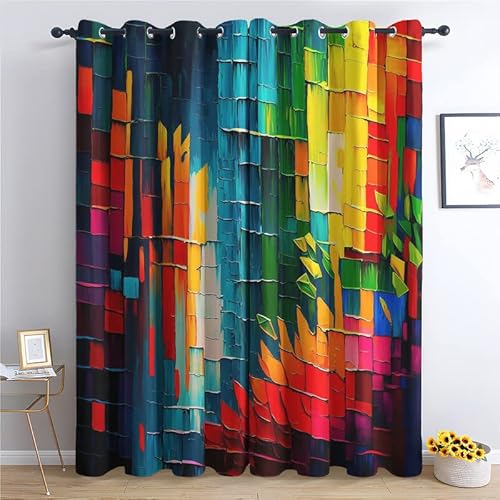 TAKUAN Rideau Occultant Abstrait Rideaux Thermiques à Oeillets pour Chambre, Motif Coloré Rideaux Salon Moderne Lot De 2 Décoration De Fenêtre pour Chambre Enfant Fille Garcon Rideaux, 140x220