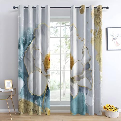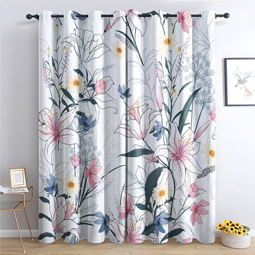 TAKUAN Rideau Occultant Fleur Rideaux Thermiques à Oeillets pour Chambre, Motif Art Moderne Rideaux Salon Moderne Lot De 2 Décoration De Fenêtre pour Chambre Enfant Fille Garcon Rideaux, 140x220