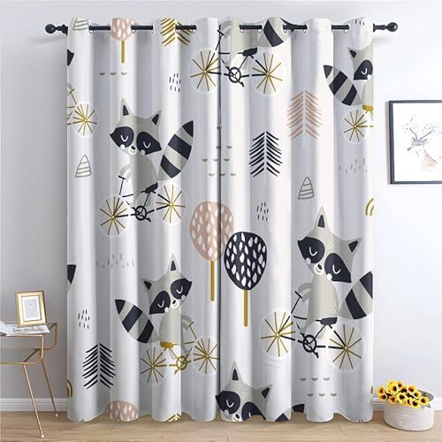 TAKUAN Rideau Occultant Raton Laveur Rideaux Thermiques à Oeillets pour Chambre, Motif Animaux Rideaux Salon Moderne Lot De 2 Décoration De Fenêtre pour Chambre Enfant Fille Garcon Rideaux, 140x220