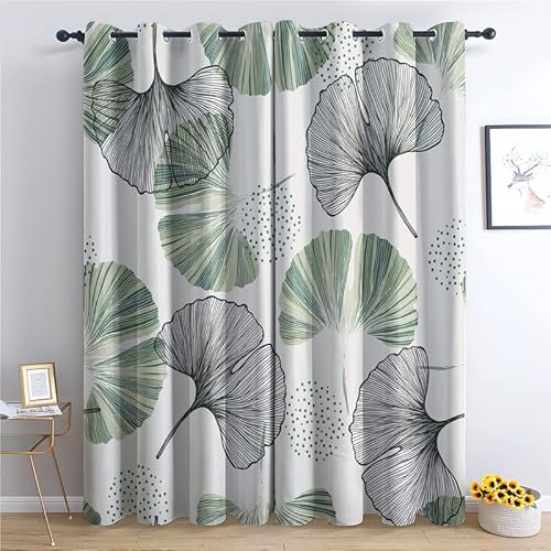 TAKUAN Rideau Occultant Ginkgo Biloba Rideaux Thermiques pour Chambre, Motif Botanique Rideaux Salon Moderne Lot De 2 Décoration De Fenêtre pour Chambre Enfant Fille Garcon Rideaux, 140x220