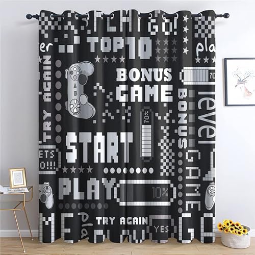 THYUNQ Rideau Occultant, Motif Gamer Gaming - Rideaux Thermiques Imprimé pour Salon Chambre Fenetre, Lot de 2 Rideaux et Draperies Intérieurs à Oeillets, 140x220 cm (L x H)