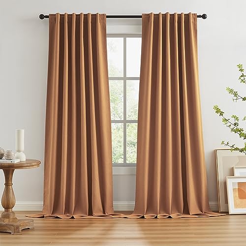 KEQIAOSUOCAI Lot de 2 Panneaux de Rideaux occultants Extra Longs en Lin pour Salon et Chambre à Coucher – Système de Sangle avec Crochet et Languette arrière, Style bohème, Orange Ocre, sourdine, 127