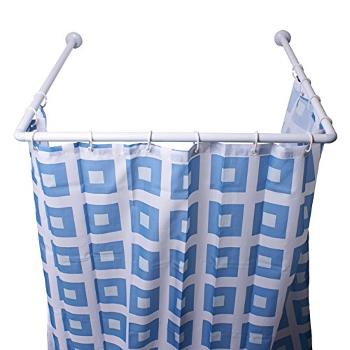 MSV, Barre Tringle pour Rideau de Douche d'angle à Fixer en Alu, Support Plafond & Anneaux Rideaux Inclus, Adapté à Tous Les Rideaux, Montage Mural, 80x80x80cm Blanc