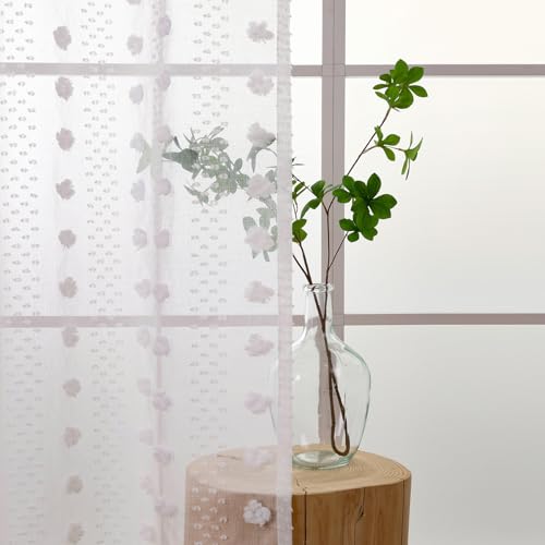 Homxi Lot de 2 Rideaux Rideaux Salon Transparent,2 x 132W x 244H CM,Rideaux Semi Transparent Blanc Motif de Fleurs Rideaux Oeillets