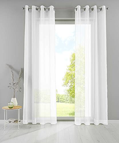 Lot de 2 Rideaux à œillets - Transparent - pour Salon - avec Fermeture en Plomb - 145 x 140 cm - Blanc - 203322