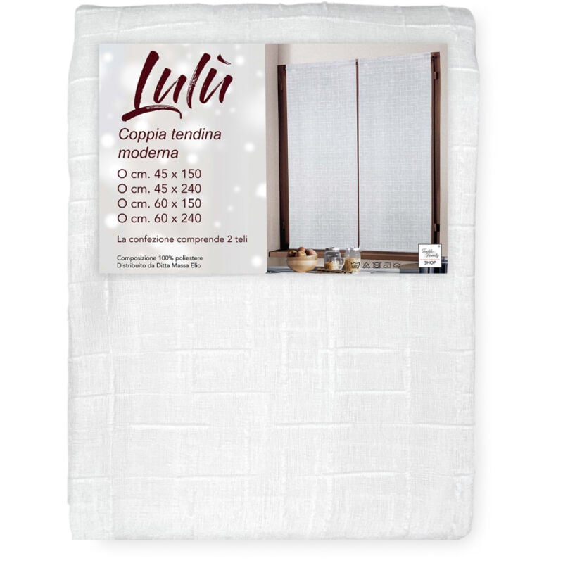 Paire de rideau moderne Lulù blanc - tissu brodé géométrique, semi-transparent, montage facile, 2 feuilles LA PAIRE (2 RIDEAUX) CM. 45x150