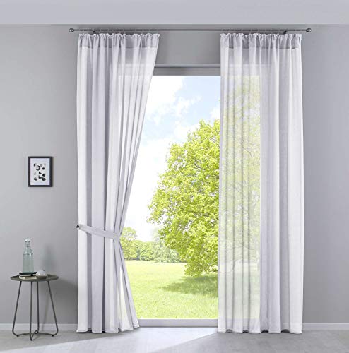 Linder Rideaux Voilage d'intérieur prêt-à-Poser Transparent élégant pour Fenêtre Polyester Lin Blanc Finition Galon Fronceur Dimensions 240 x 215 cm idéal Salon Chambre Cuisine