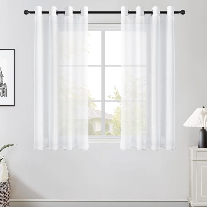 NICETOWN Rideaux Voilages Blanc Lot de 2, 140x125cm (Largeur x Hauteur) à Oeillets, Semi-Transparent Lumineux pour Cuisine Chambre Maison, Décoration Fenêtre