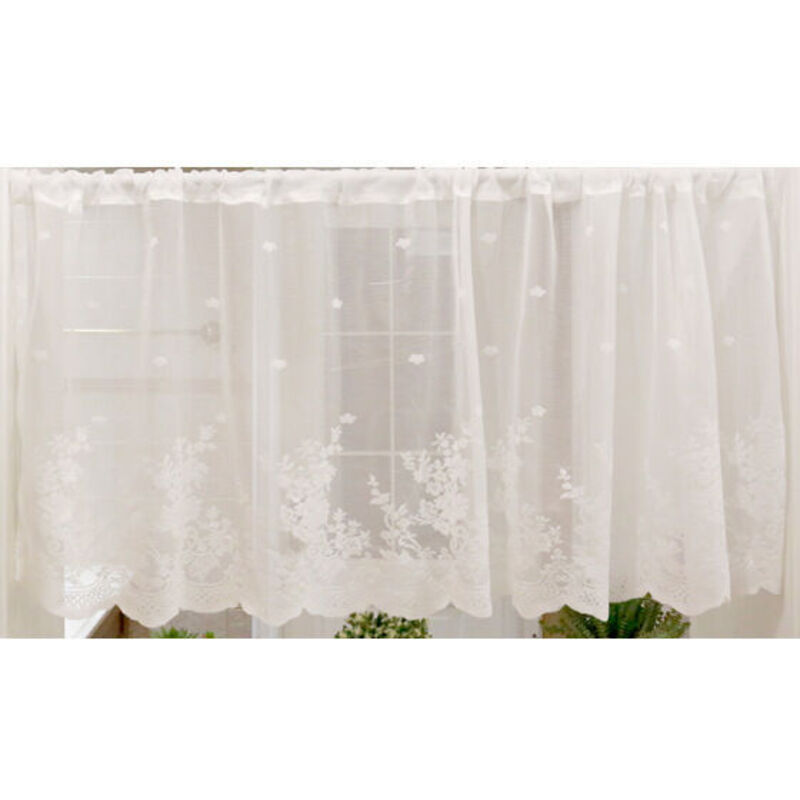 Rideaux Brise Bise Fleurs Découpée Court Rideau Passe Tringle Semi-Transparent Cuisine Bureau Chambre 1 Pièce Blanc 60x150cm