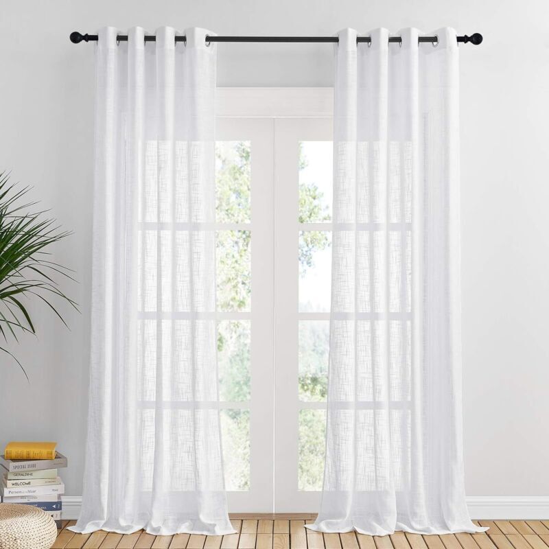 NICETOWN Rideaux Voilages Blanc Lot de 2, 140x215cm (Largeur x Hauteur) à Oeillets, Semi-Transparent Lumineux pour Porte Salon Chambre Maison, Décoration Fenêtre