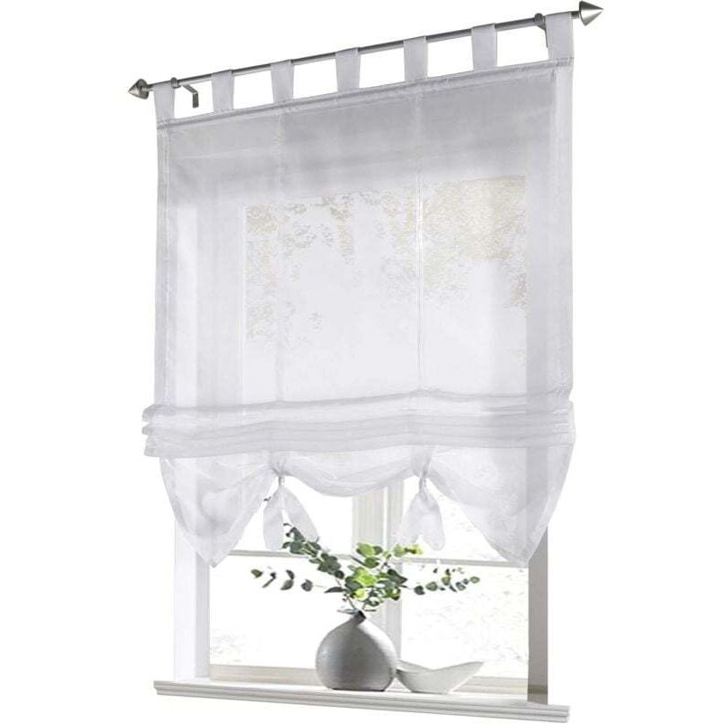 ZVD Store bateau 1 pièce avec passants, rideaux, cuisine, transparent, store à passants, rideaux, voile moderne (blanc, LxH 60 x 155 cm)